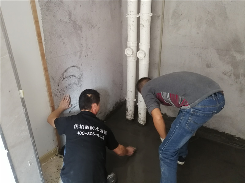 首先將墻面水電開槽用水泥封堵,進行基層清理,防水涂料要涂滿,與基層結(jié)合牢固,無裂紋、無氣泡、無脫落,涂刷高度要一致。