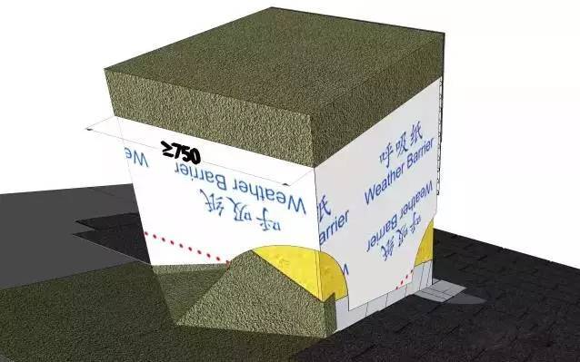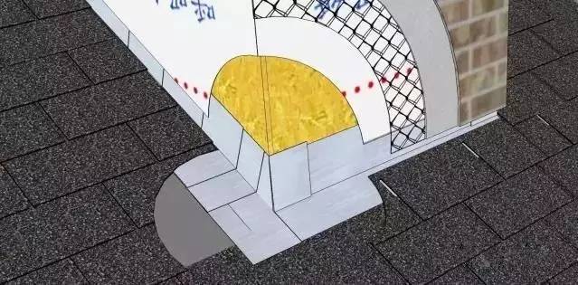 有充分的理由顯示,很多屋面漏水的原因在于煙囪的泛水處理。最常出現(xiàn)的煙囪問題是施工人員不清楚或不愿花時(shí)間在煙囪背后做散水坡。正確的做法是作出散水坡后,再鋪設(shè)防水卷材,并與煙囪的呼吸紙正確搭接。