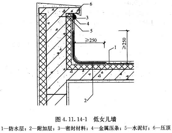 4.11.14 女兒墻的防水構(gòu)造應(yīng)符合下列規(guī)定: