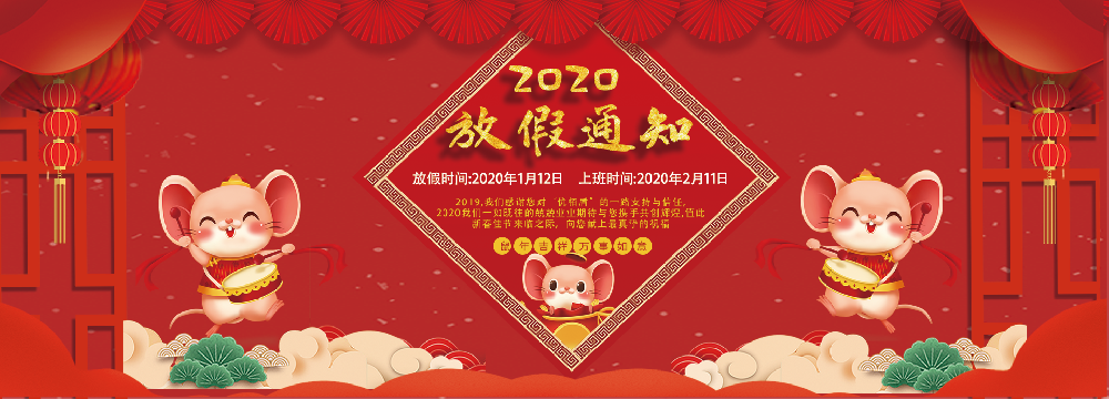 尊敬的新老客戶及全體員工: 你們好! 新春佳節(jié)漸近,為歡度中華民族的傳統(tǒng)佳節(jié),使全體人員能夠開開心心地過上一個歡樂、祥和的2020年春節(jié),盡可能的與家人一起享受節(jié)日的歡樂和喜悅;結(jié)合生產(chǎn)情況,經(jīng)公司研究決定: 公司定于1月12日起開始放年假,年假共計30天,截止時間為2月10日,2月11日正式上班。由于春節(jié)放